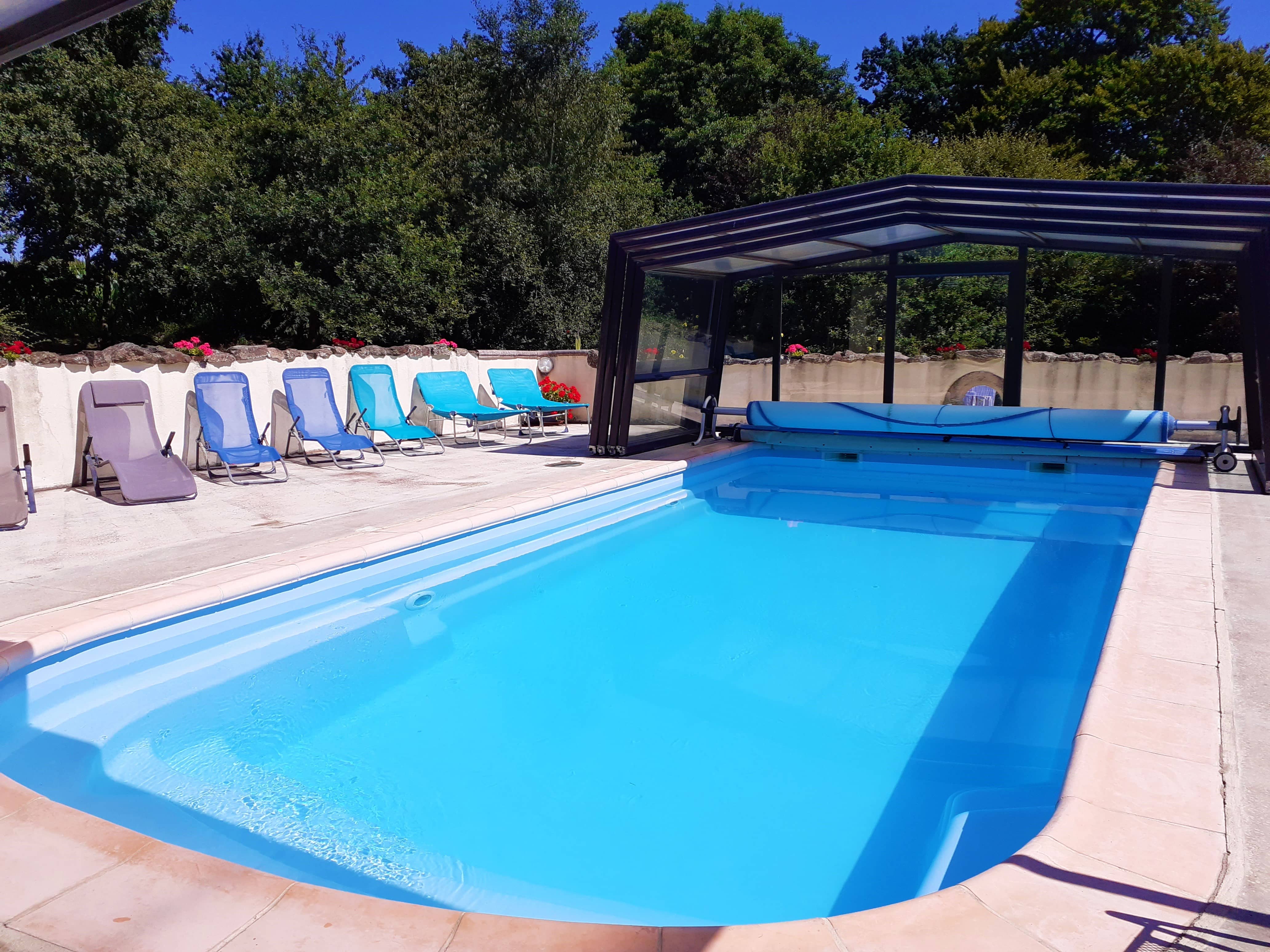 Notre espace piscine est équipé d'une couverture rétractable ce qui vous